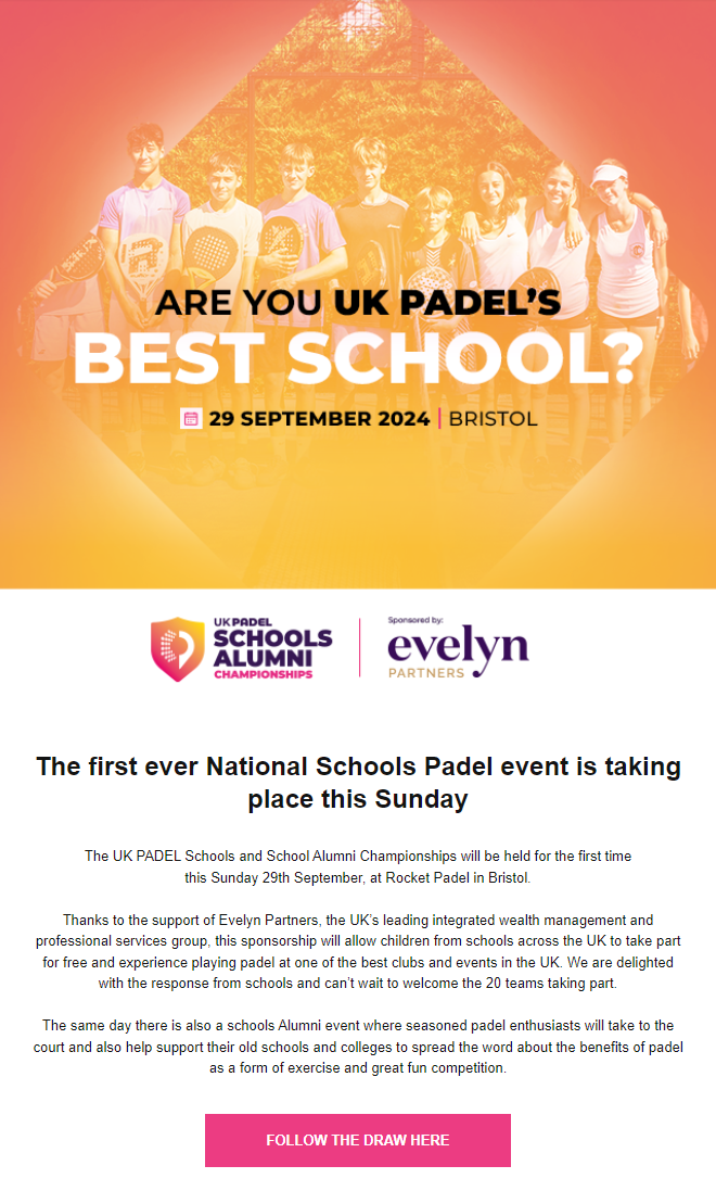 “We believe this series will help accelerate the growth of the sport”, says Nick Baker, CEO at UK Padel. “By spreading the four events over the calendar year, we create a year-long cycle to build and engage a loyal fan and player base.” The UK Padel County Championships 2024 series began in March at Rocket Padel in Bristol with the over 50’s event and will conclude with the open tournament at the same venue in November.